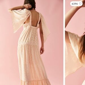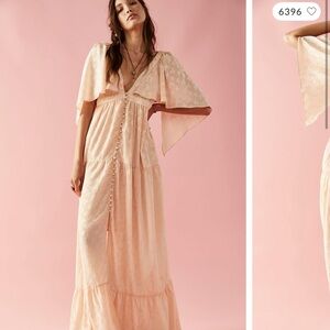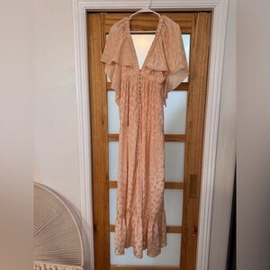 RARE** Free People Pink Maxi Dress with Flutter Sleeves and V-Neck