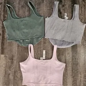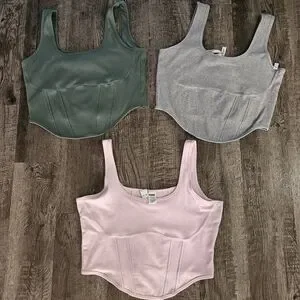 Super cute bundle of PINK Victoria Secret Corset like tank top. Light baby pink, Forrest green & Gray. Nice material with stretch, all were bought new from Victoria Secret Store 🩷💚