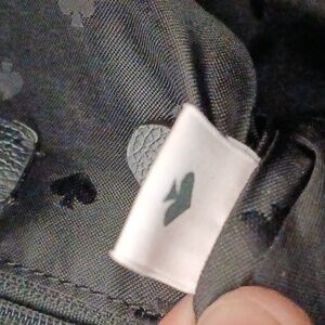 Black nylon construction with a floral pattern featuring "dusk buds" (flowers) in shades of pink, white, and burgundy.