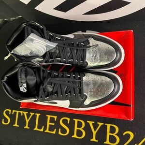 Jordan Black and Silver High-Top Sneakers. W12/M10.5