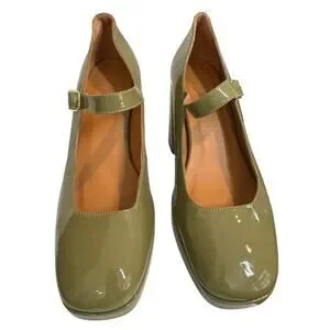 Sezane Georgia High Mary Janes Polished Pistachio Green Patent FR 39 US 8