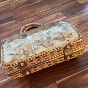 Tags- beach, vacation, coastal, coastal grandma, retro, wicker, wicker handbag, vintage, vintage handbag, beachy, seashells