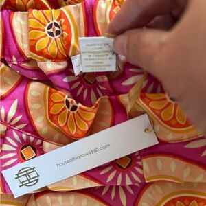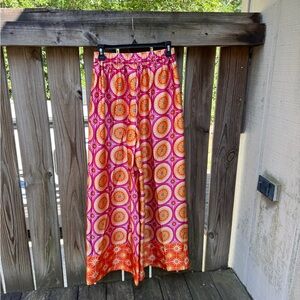 House of Harlow 1960 Pink and Orange Patterned Wide Leg Satin Pants