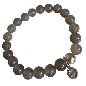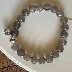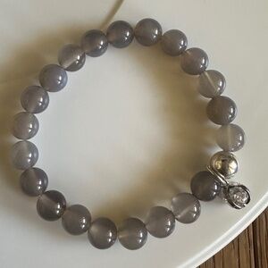 Beautiful 8mm natural gray agate stretch bracelet accented with a sterling silver ball spacer and a sparkling CZ charm. A timeless, neutral piece thatβs perfect for everyday wear or stacking π€