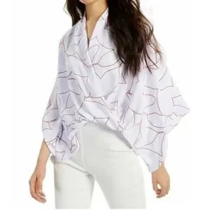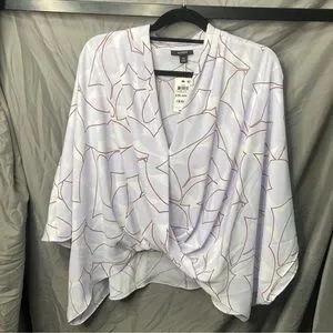 Alfani | This is a stylish white and purple blouse with a unique brown geometric design. Soft fabric. Perfect for any occasion. NWOT