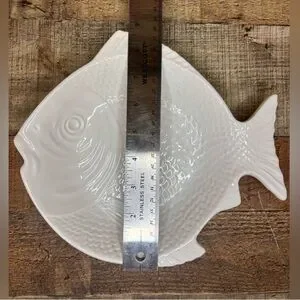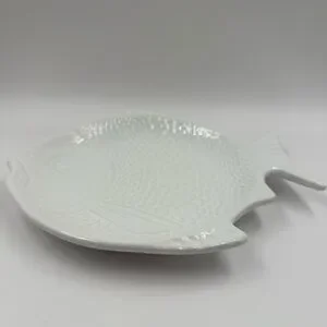 White Plate Vintage Whittier Unique Pottery Ceramic Textured Fish Shaped Bowl