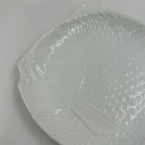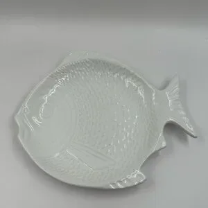 Elegant white fish-shaped ceramic plate, perfect for serving or decoration. Its unique design adds a touch of charm to any setting.