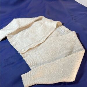 Experience the comfort of the Sunday Best White Cardigan, crafted in a chunky knit with a classic V-neck design. This versatile piece features long sleeves and a cropped length, perfect for layering over your favorite outfits. Its simple yet sophisticated style makes it an essential addition to any wardrobe. There is overall pilling but it basically adds to the look.