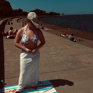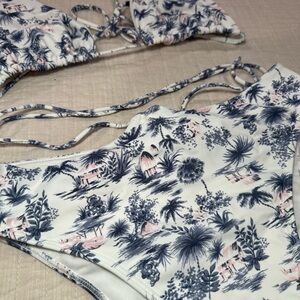 Stylish bikini with a floral pattern. Halter top with tie detail. Comfortable and chic design. Worn once. Tags no longer on