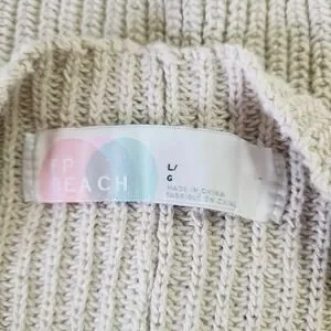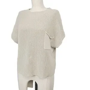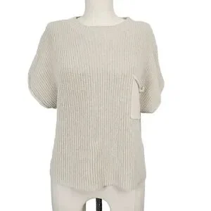 Free People Beach Freya Sweater Beige Cotton Short Sleeve Patch Pocket Top L