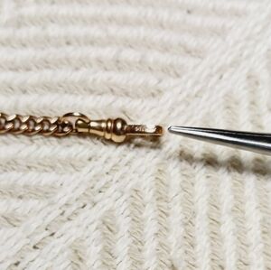 This elegant marked 12k gold filled Albert watch chain adds a touch of sophistication to any outfit. Perfect for any occasion.
