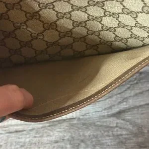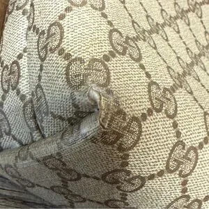 This is a pre-loved vintage Gucci, Sherry Line travel tote bag. It can be used for daily use as well, but due to its size it is very convenient for travel purposes. There are signs of where to the corners. Please see all photos before purchasing. You will notice some cracking on the corners.