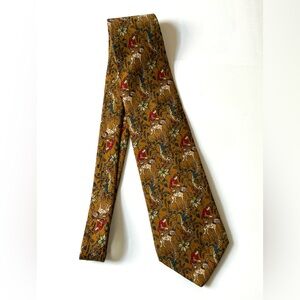 Discover the timeless elegance of Brooks Brothers ties, crafted in luxurious silk with a sophisticated gold and red color scheme. These ties feature renaissance inspired pattern man with his dogs in garden Perfect for those who appreciate classic style and quality craftsmanship.