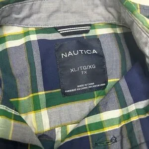 Nautica Navy and Green Checkered Shirt Boys XL 7X