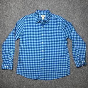 LL Bean Slightly Fitted Shirt Large Blue Checked Long Sleeve Button Mens