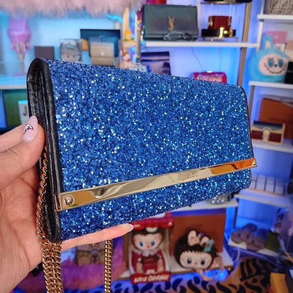 JIMMY CHOO Glitter Milla Wallet on Chain Navy Crossbody Leather Bag