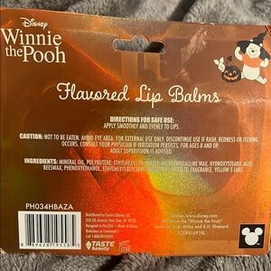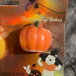 Charming Disney lip balm set featuring Winnie the Pooh and pumpkin designs. Delightful flavors in vibrant yellow and orange packaging. Perfect for adding a touch of fun to your beauty routine.