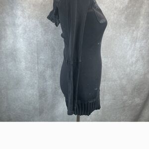 Treasure Rock Black Hooded Distresses Long Sleeved Sweater Dress. M