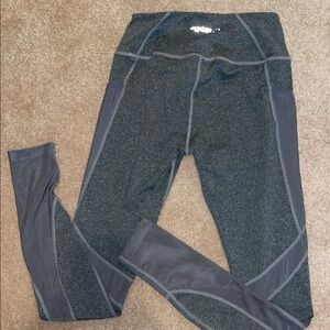 Gray leggings featuring mesh accents. Two side mesh pockets. Ideal for active wear. These are full length. Size small.