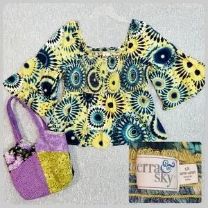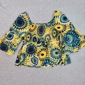 Vibrant Terra & Sky floral peasant blouse in blue and yellow. (bag not included)