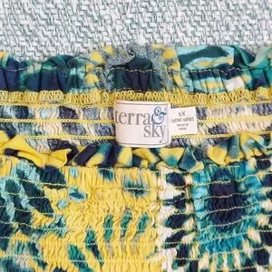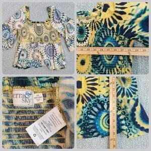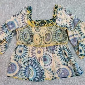Terra & Sky Floral Blouse, Blue & Yellow Tie Dye, Womens Sz XL