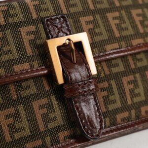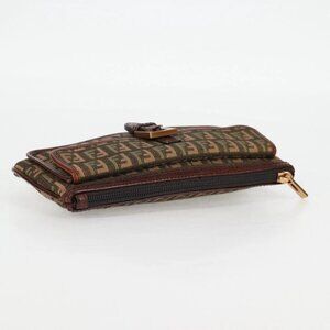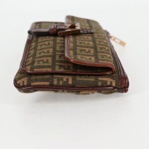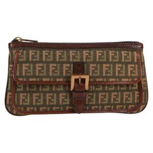 FENDI Zucchino Canvas Pouch Khaki Auth