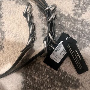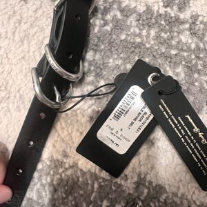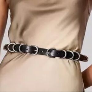 Stylish black leather belt featuring elegant silver accents. Perfect for adding a touch of sophistication to any outfit.