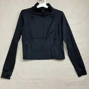 All in Motion Women's XL Black 1/2 Zip-Up Femme Knit Pullover Jacket Thumbhole