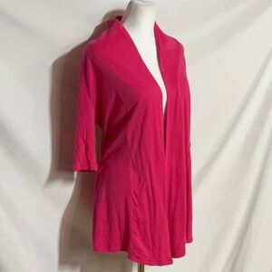 Stylish pink cardigan from Express. Features an open front and three-quarter sleeves. Perfect for layering. Size small. 60% cotton 40% modal.