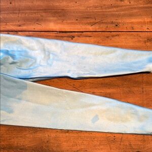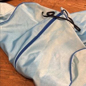 Sun fade and wax/oil marks visible on blue parts. Integrity of the wetsuit is still good. Velcro and zipper down the back.