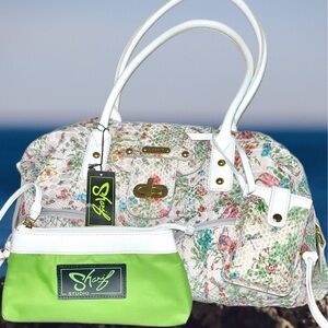 Sharif 3 Pcs. Floral and Green Sequin Bag Set NWT
