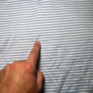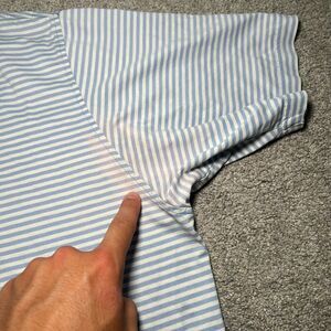 Peter Millar Polo Shirt Men's Large Size XL Striped Golf Blue and White has some stains and fading
