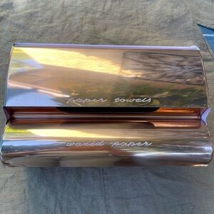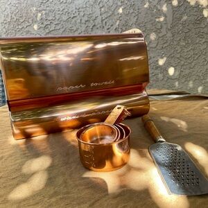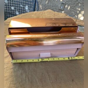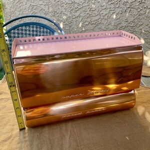 Rare Vintage Copper Paper towel and Foil Wax Paper Lincoln Beauty Ware Metal Kitchen Dispenser. Pink and copper. In excellent vintage condition.