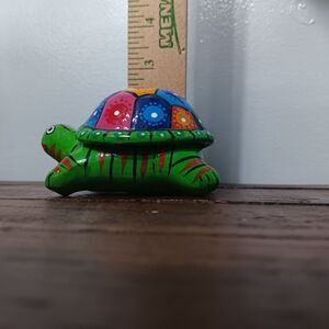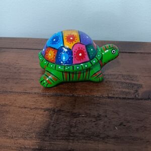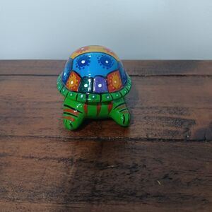Vintage Turtle Trinket Box Terracotta Clay Mexico Hand Painted