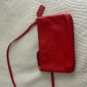 This Coach crossbody bag in vibrant red is crafted with a sleek, modern design that exudes sophistication. Its structured shape and minimalistic style make it a standout accessory for any occasion. 3 large pockets & one small pocket. Used 1 time for an event. Adjustable strap. The true red color adds a bold touch to your ensemble, ensuring you make a statement wherever you go. Purchased at Coach store in Green Hills Nashville Tn