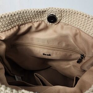 The Sak Crochet drawstring bag is a small woven hobo bag with a hippie-inspired design. Made from polypropylene with a polyester lining, it features a beige drawstring and snap closure, along with a decorative bag charm. The exterior is accented with crochet and beading details, adding a touch of bohemian flair to the ivory-colored bag. With a width of 11 inches, height of 9 inches, and depth of 5 inches, this stylish accessory is perfect for women looking for a unique and on-trend handbag.