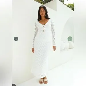 This elegant white lace maxi dress is perfect for any occasion. Featuring a flattering V-neckline and delicate lace detailing, it offers a sophisticated and timeless look. Ideal for both day and evening wear.