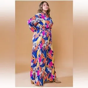 NWT! Plus Luxury Floral Jumpsuit Long Sleeve Elasticized Waist Wide Leg Pockets