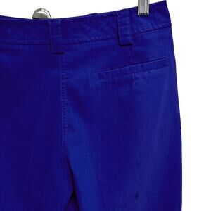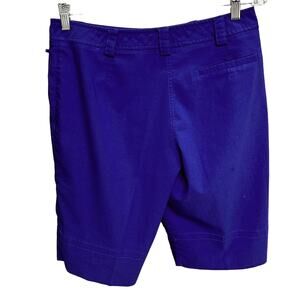 Lija Royal Blue High Rise Golf Bermuda Shorts. Rayon Polyester Spandex. Two front patch pockets, one rear slit pocket. There is a small stain on the back right leg as shown in the last picture. Otherwise, they are in very good condition. Size 10. Measurements taken flat: