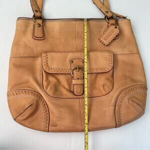 Coach Poppy Whipstitch shoulder bag tan leather with pink lining
