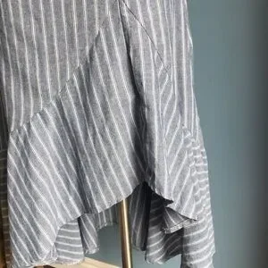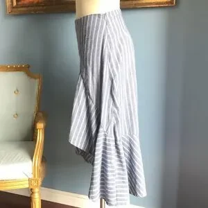 Gray & White, striped, asymmetric, ruffled maxi skirt.