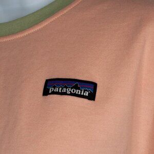 Organic Cotton Lightweight Crew Sweatshirt from Patagonia in a girl's size XL. Pink and green colorblock. New with tag attached.