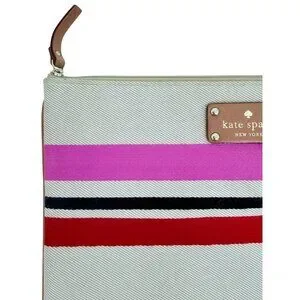Kate Spade Oak Island Multicolor Striped Large Zip Clutch w/Gold Hardware