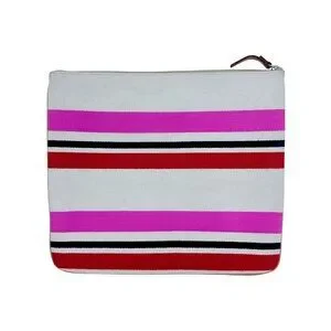 This oversized clutch combines style & functionality with its vibrant striped pattern, durable gold hardware & spacious interior. Ideal for carrying essentials.