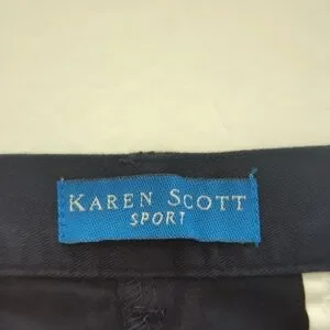 NWT Karen Scott Sport High-Waisted Stretch Belted Shorts 18 Navy Blue Pockets