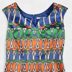 Boden Dress Womens 10R Blue Orange Green Geometric Print Sleeveless Sheath Lined