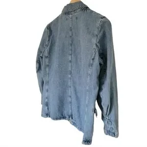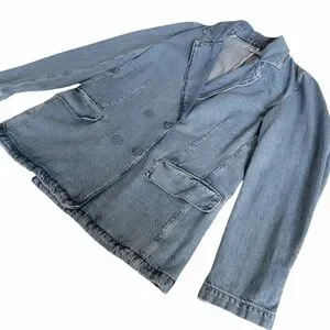 ZARA Denim Double Breasted Blazer Boxy Oversized Jacket Blue Women’s Siz…