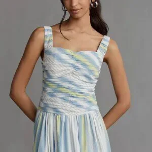 By Anthropologie Square-Neck Drop-Waist Maxi Dress