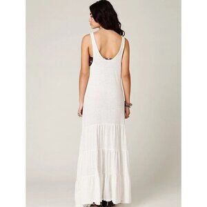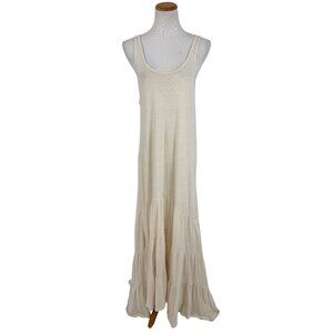 RARE Free People Beach Cream White Casual Boho Tiered Ruffle Hem Maxi Tank Dress