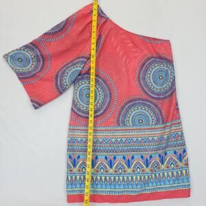 Hello Miss Short Dress One Shoulder Pattern Women S Coral MultiColor Blue Lightweight Pullover, No stretch to the fabric.